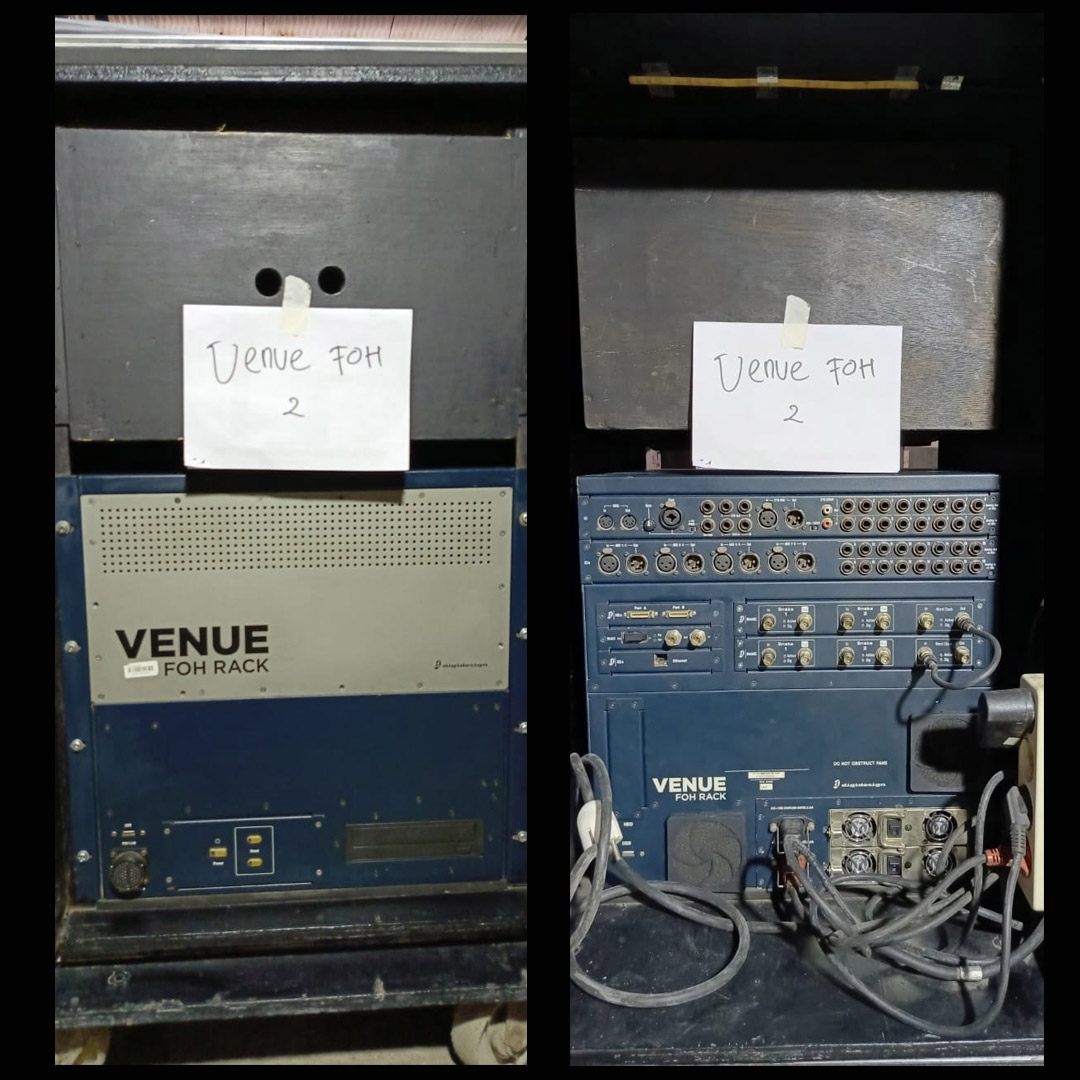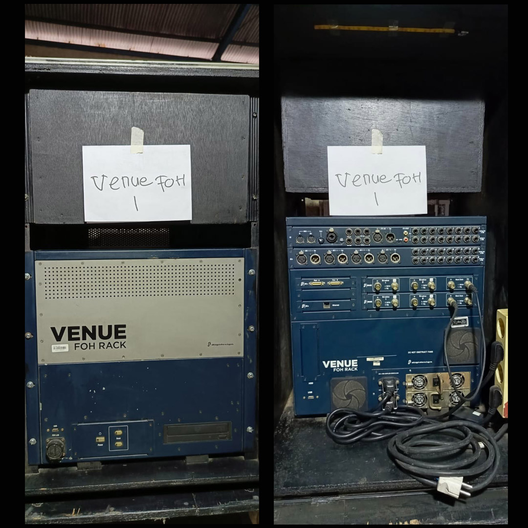 2 set Avid consoles dengan 4 core card di setiap console. 1 set terdiri dari: 1 Console, 2 Stage Rack 96 channel